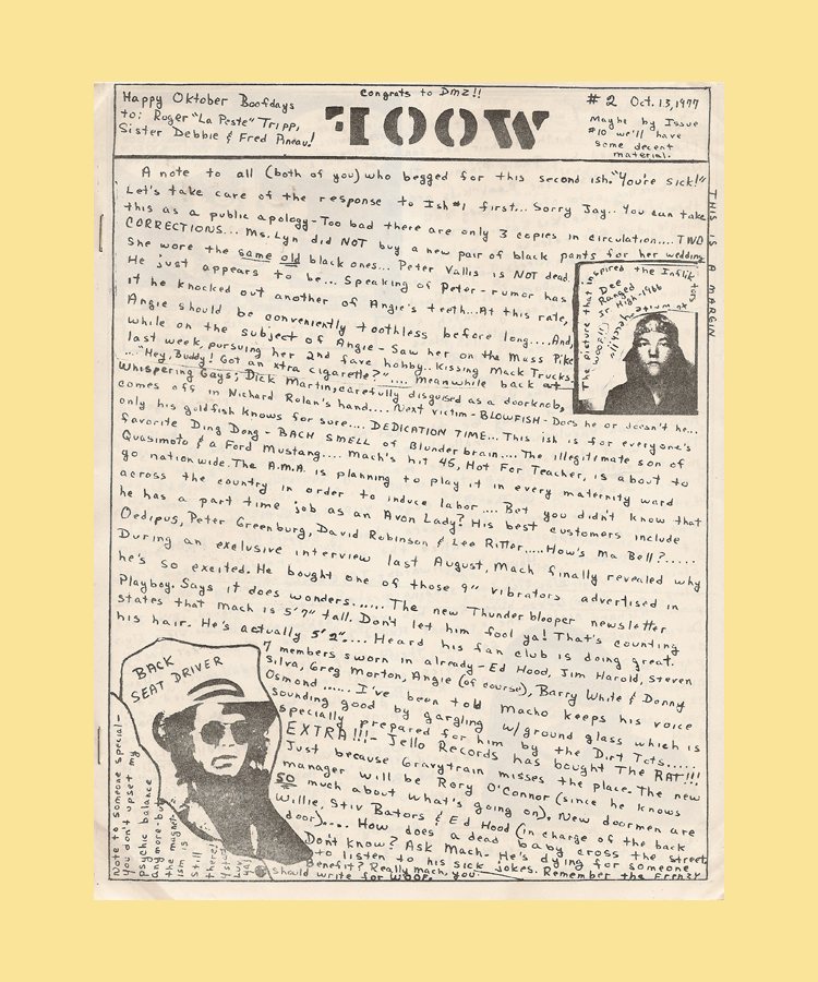 Great piece of writing. And loved the graphics. Have special nostalgia for that period of zines. The only ones I could think of that you missed was Damage — which was the seminal San Francisco punk tabloid. And Flipper (started in 1977 as a xeroxed thing).